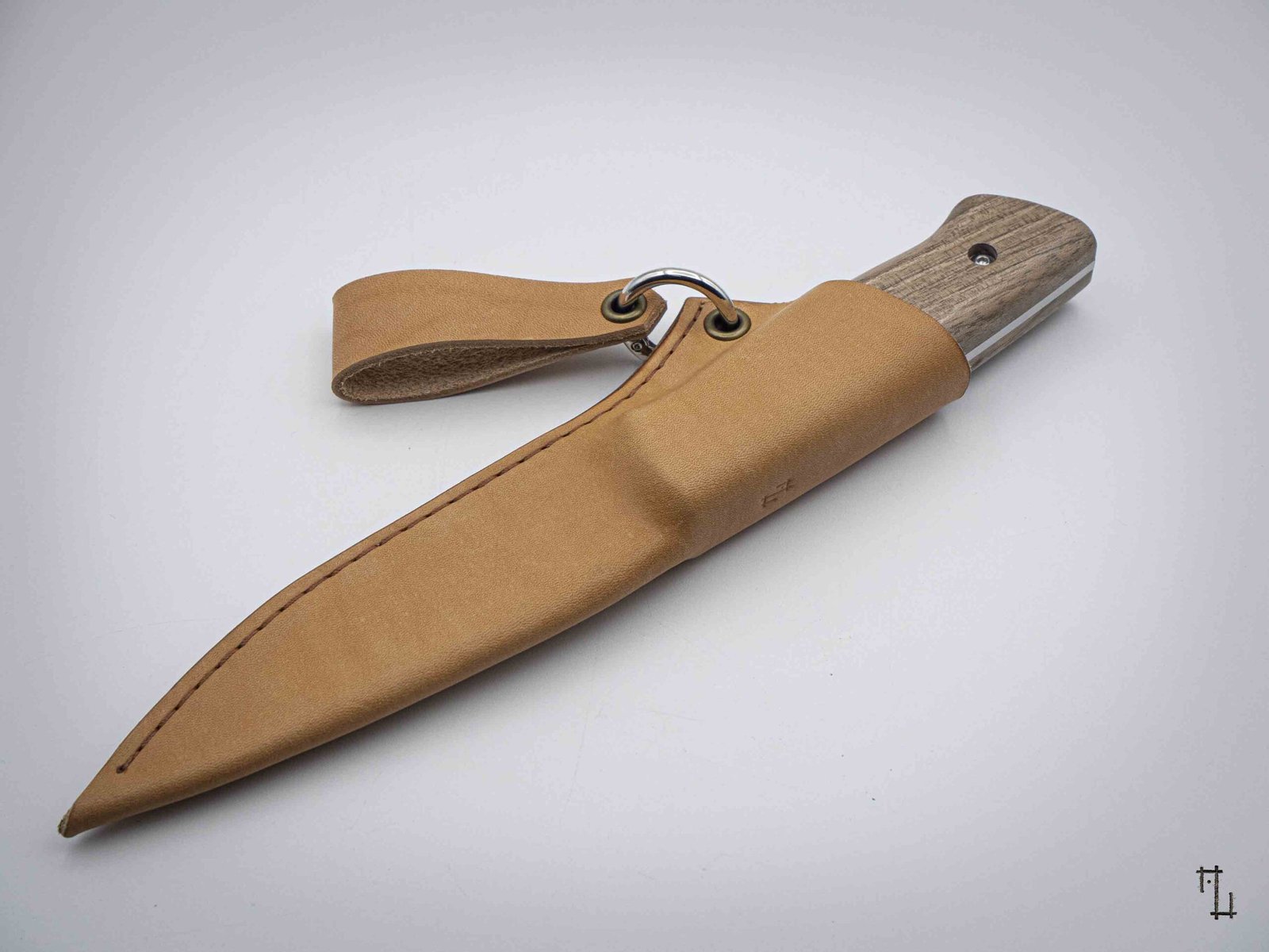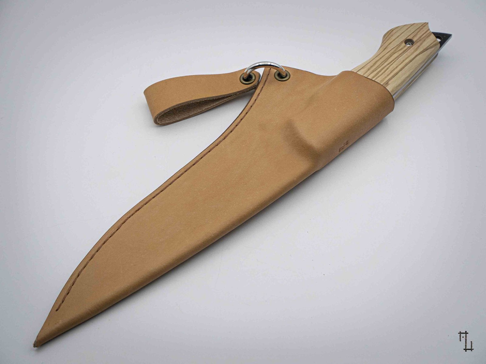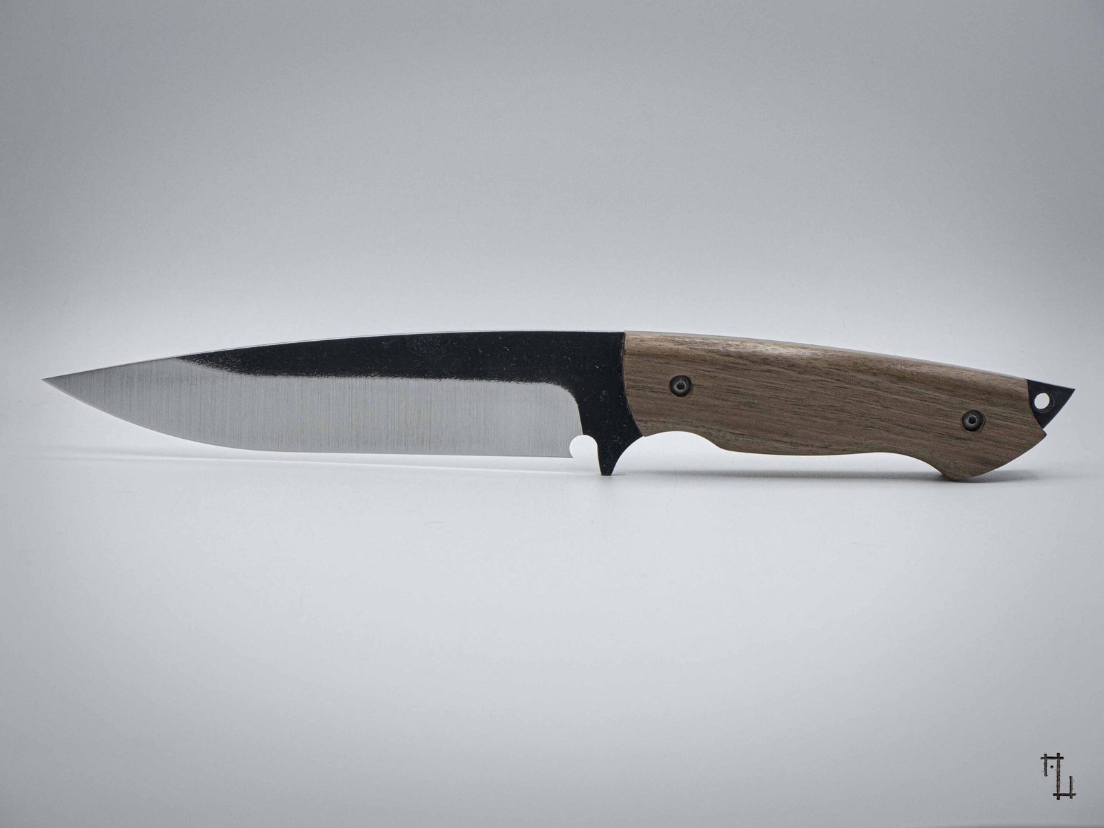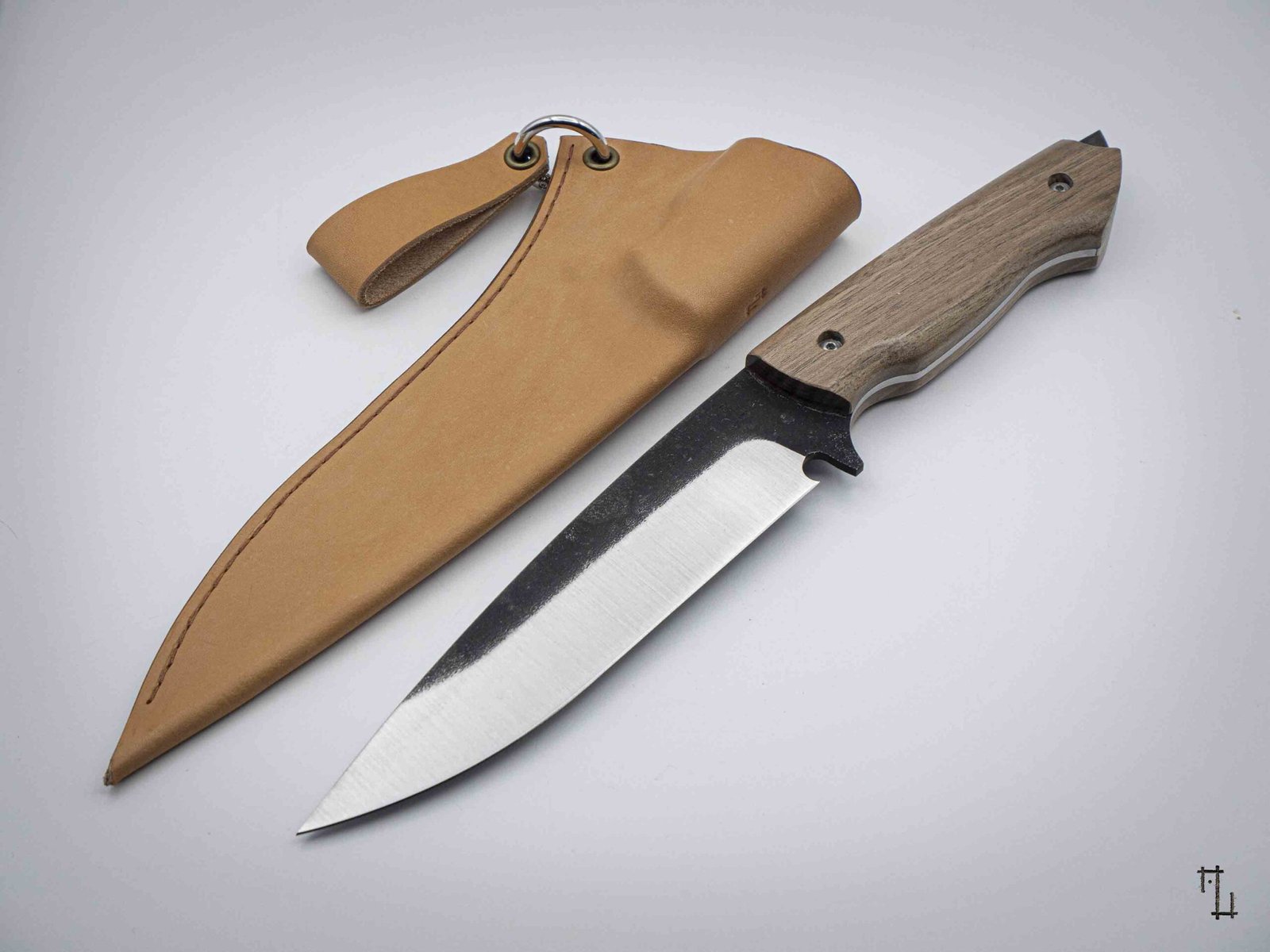 Mia interpretazione e rivisitazione dello storico, così detto, coltello del fabbro. Modello utilizzato dall’epoca celtica e per tutto il medioevo fino all’epoca rinascimentale. Lama di uso quotidiano, multiuso di varie dimensioni, dalla cucina a coltello da pasto o da caccia.
